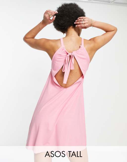 Vestido corto rosa luminoso con cuello fruncido y espalda abierta de ASOS DESIGN Tall