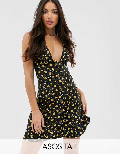 Vestido de verano con estampado de pensamientos y diseño abotonado de ASOS DESIGN Tall