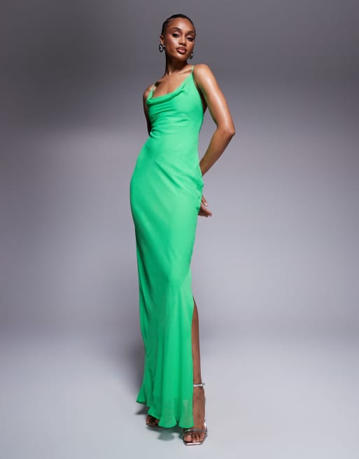 Vestido largo verde de corte al bies con espalda de tiras cruzadas de ASOS DESIGN Tall