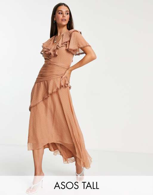 Vestido midi drapeado con detalle anudado de gasa de plumeti de ASOS DESIGN Tall