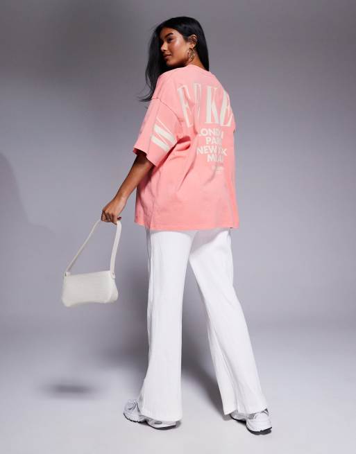 Camiseta color piedra y melocotón lavado extragrande con logo apilado en la espalda Icon de Weekend Collective