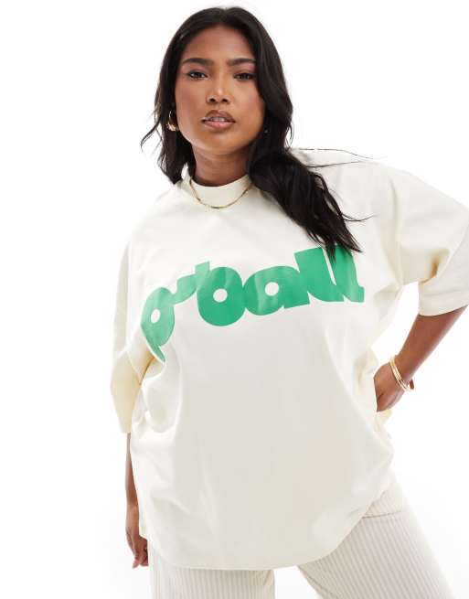 Camiseta dad amarillo pastel extragrande con logo de Weekend Collective Curve