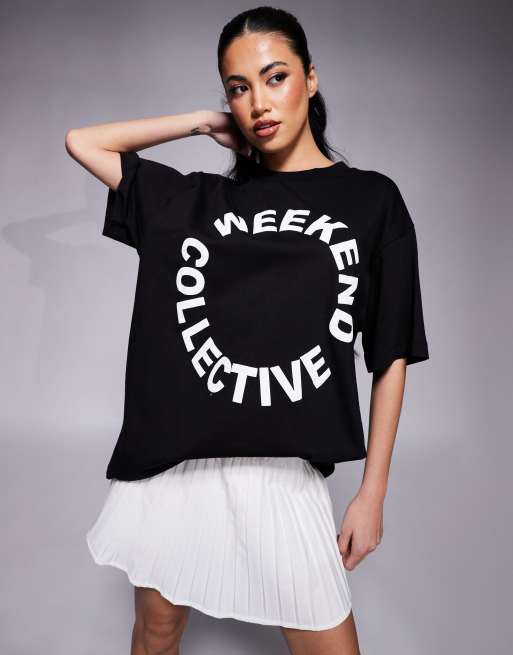 Camiseta negra extragrande con estampado circular gráfico del logo Icon de Weekend Collective