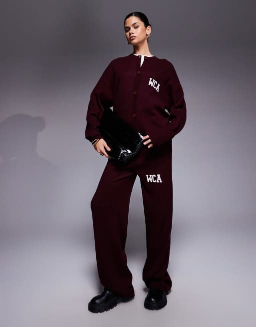 Conjunto burdeos con estampado gráfico universitario de punto de Weekend Collective