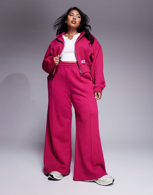 Conjunto burdeos de joggers de pernera recta y chaqueta corta con jaretas de tejido grueso de Weekend Collective Curve