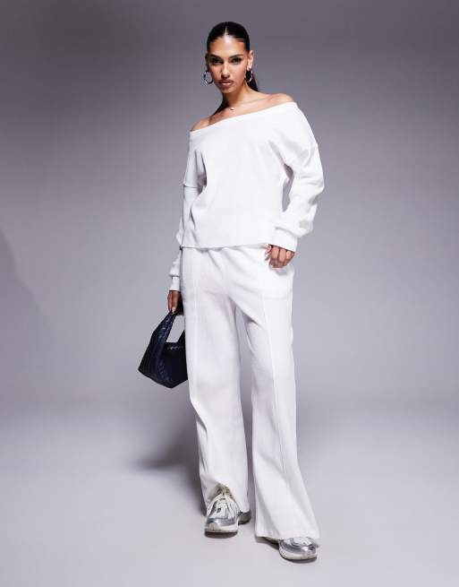 Conjunto color crema de joggers y top con escote Bardot de tejido gofrado de Weekend Collective