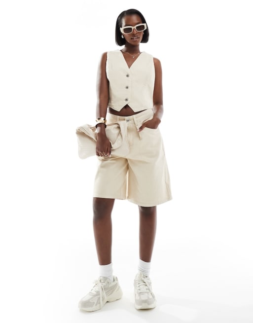 Conjunto vaquero de sastre color crudo de chaleco y pantalones cortos de ASOS DESIGN Weekend Collective