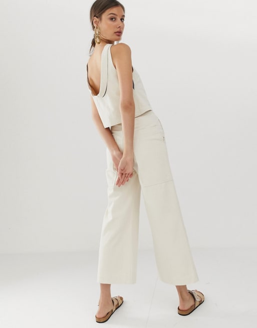 Conjunto de top vaquero con espalda redondeada y pantalones vaqueros de ASOS WHITE