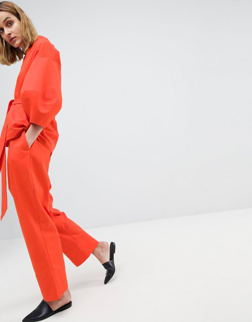 Top y pantalones de sarga de algodón con mangas estructuradas de ASOS WHITE (conjunto)