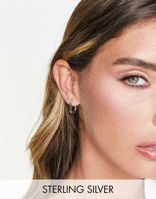 Pendientes de aro rectangulares de plata de ley de Astrid & Miyu