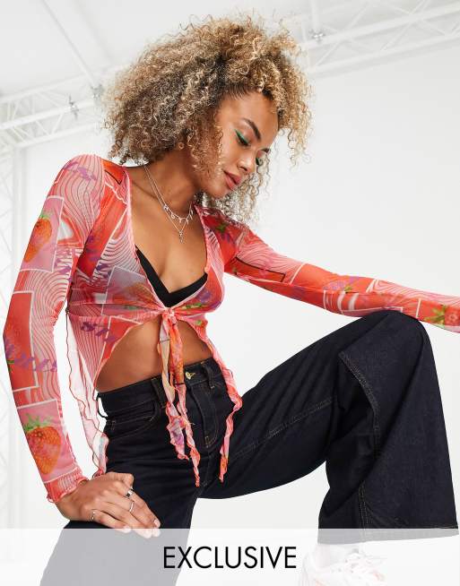 Cárdigan estampado anudado en la parte delantera de malla de ASYOU