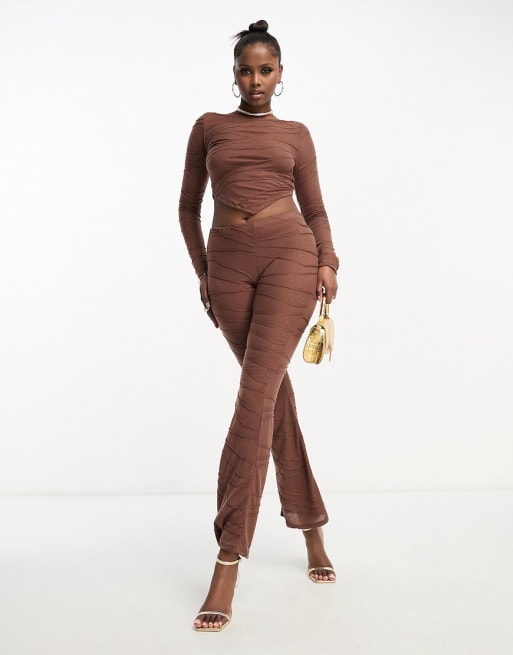 Conjunto marrón de pantalones de campana con abertura de ASYOU