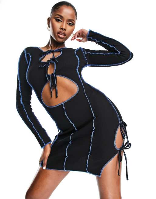 Vestido negro con detalle de costuras de canalé de ASYOU