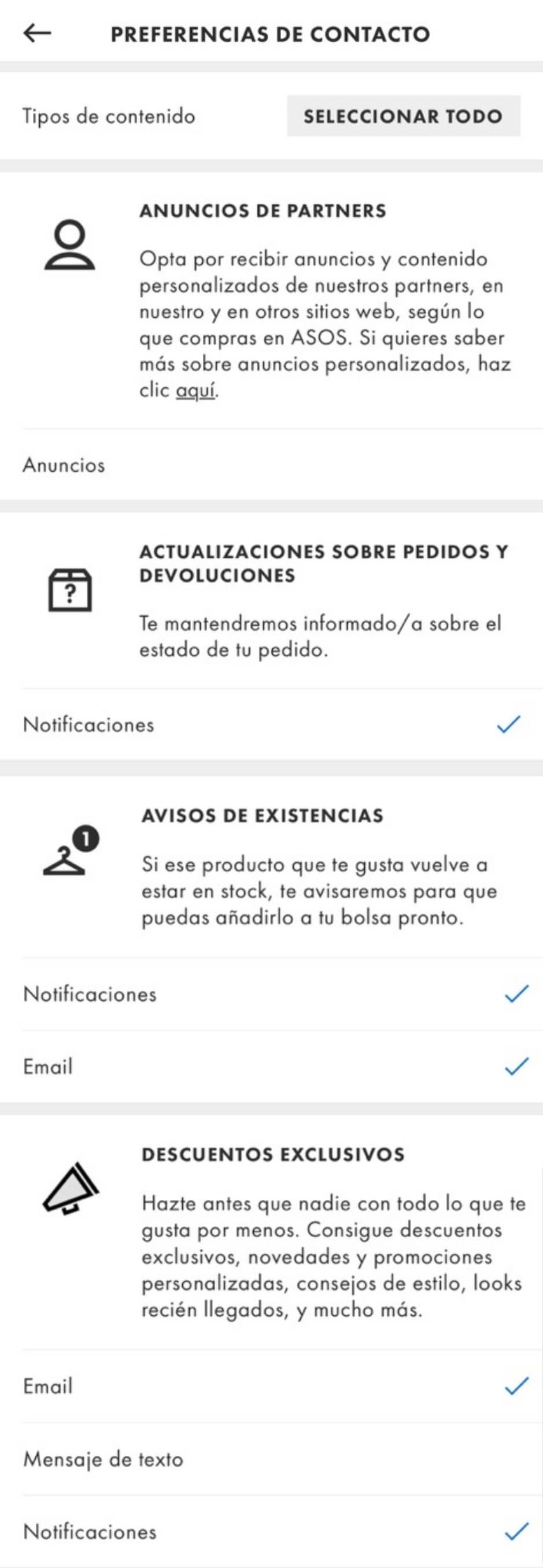 Para hacerlo, ve a "Mi cuenta" y selecciona "Notificaciones". Una vez dentro, podrás activar la opción de recibir en tu teléfono notificaciones de stock, actualizaciones de envíos y devoluciones y descuentos y novedades. - Revisa tu dirección de correo electrónico.