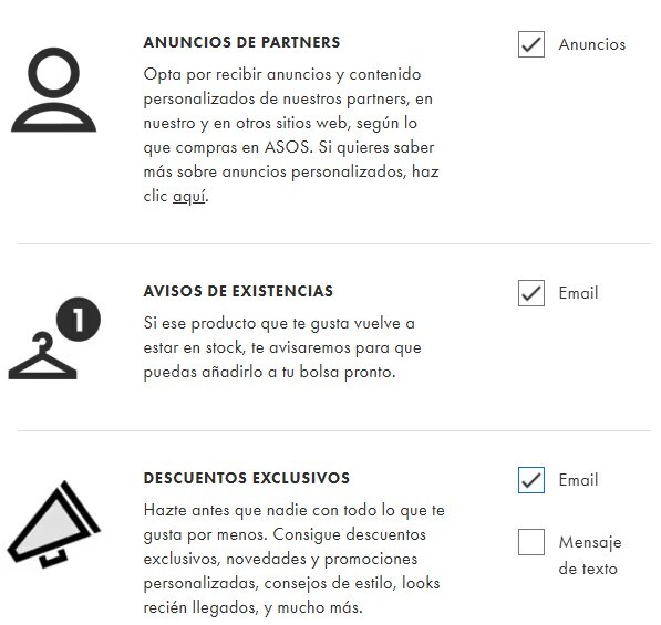 - Marca las opciones que te interesen y pulsa el botón "Confirmar preferencias".