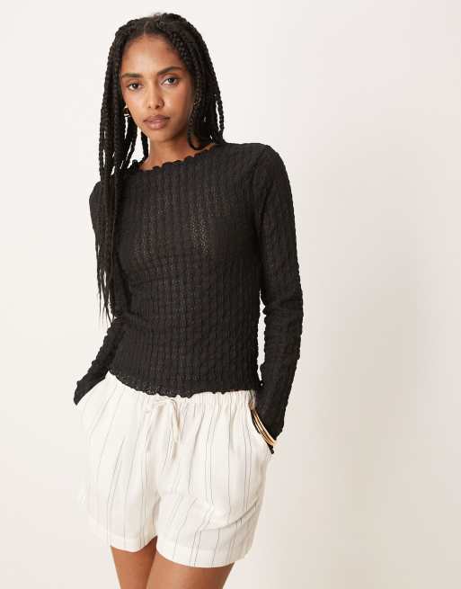 Camiseta negra de manga larga con bordes ondulados de punto texturizado de AWARE