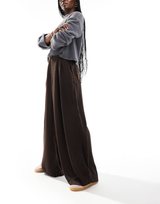 Pantalones marrón chocolate de pernera ancha con pinzas delanteras de AWARE