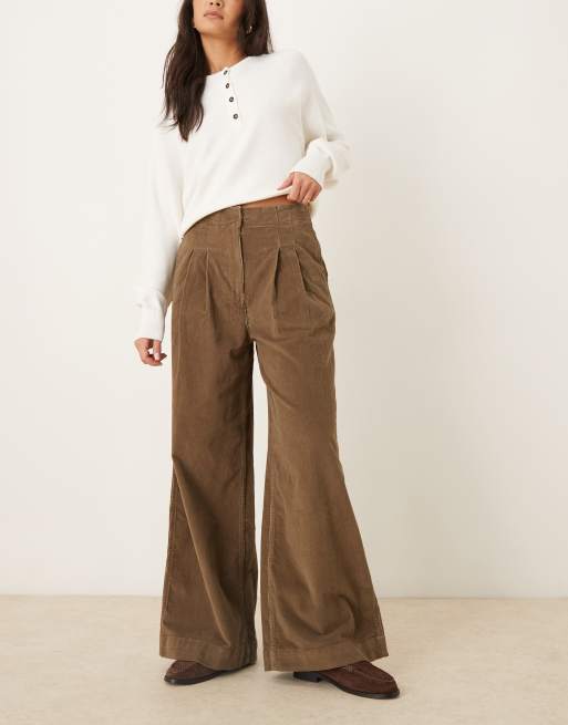 Pantalones marrón teca de pernera muy ancha con pinzas delanteras de pana de AWARE