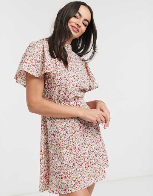 Vestido corto con cuello subido y volantes en las mangas de AX Paris