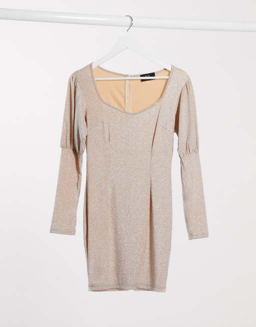 Vestido corto con manga abullonada en rosa claro metalizado de AX Paris