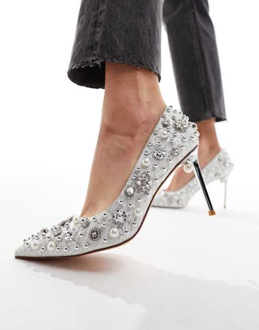 Zapatos de salón de novia plateados con diseño adornado Moon de Azalea Wang