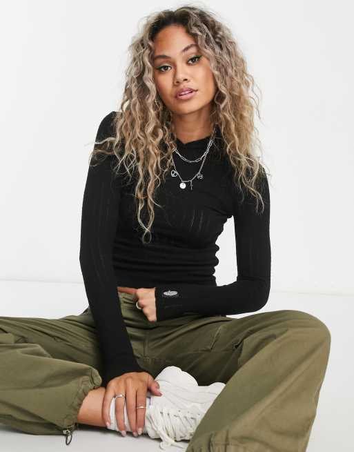 Sudadera negra de corte efecto encogido con capucha de punto texturizado de Basic Pleasure Mode