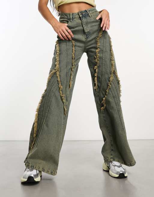 Vaqueros azul deslucido de pernera ancha con detalle de costuras efecto desgarrado Mudbunny de Basic Pleasure Mode