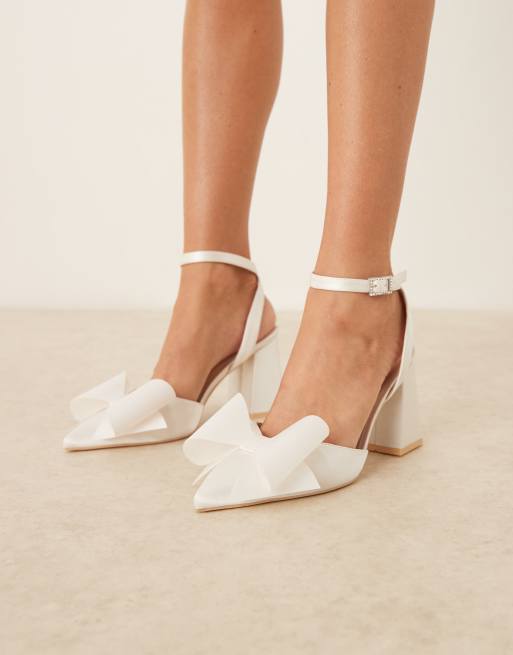 Zapatos de novia blanco marfil de tacón grueso con lazo Flavia de Be Mine Wide Fit