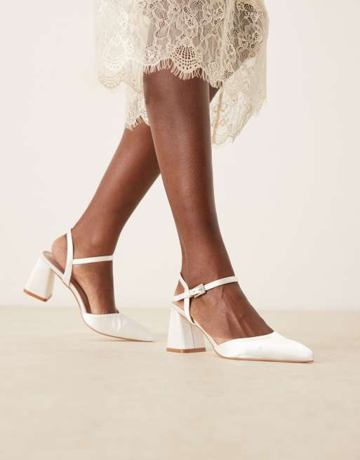 Zapatos de novia blanco marfil de tacón de bloque con puntera fina Ravina de Be Mine
