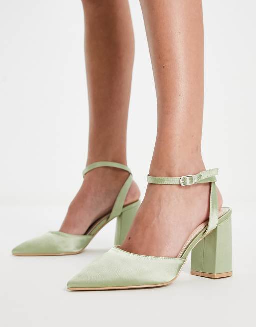 Zapatos verde salvia de tacón de bloque de satén Neima de Be Mine