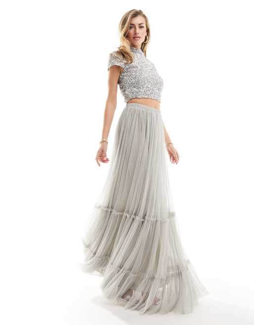 Falda larga gris escalonada de tul de Beauut (parte de un conjunto)