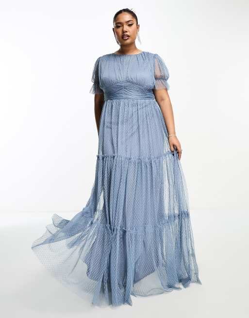 Vestido de dama de honor largo azul oscuro de tul de Beauut Plus