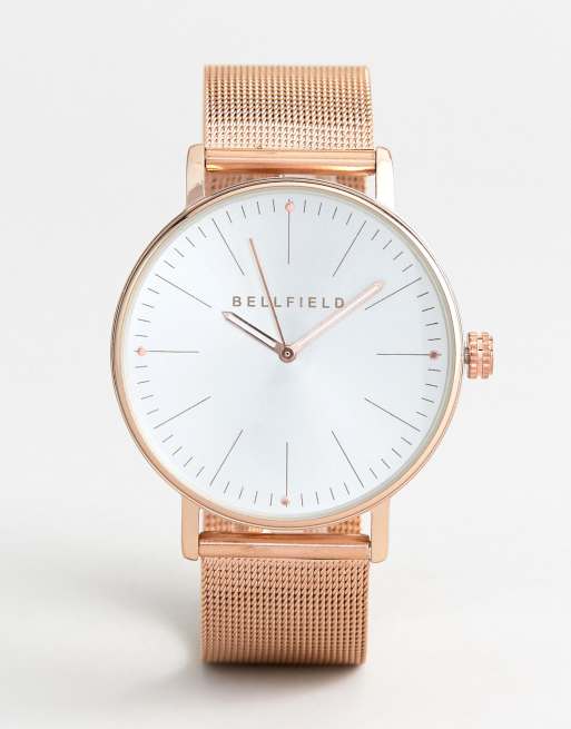 Reloj dorado rosa con correa de malla de Bellfield
