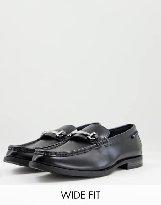 Mocasines negros de cuero con bridón de metal de Ben Sherman Wide Fit
