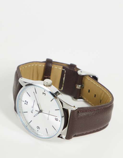 Set de regalo de reloj y tarjetero marrones de cuero de Ben Sherman