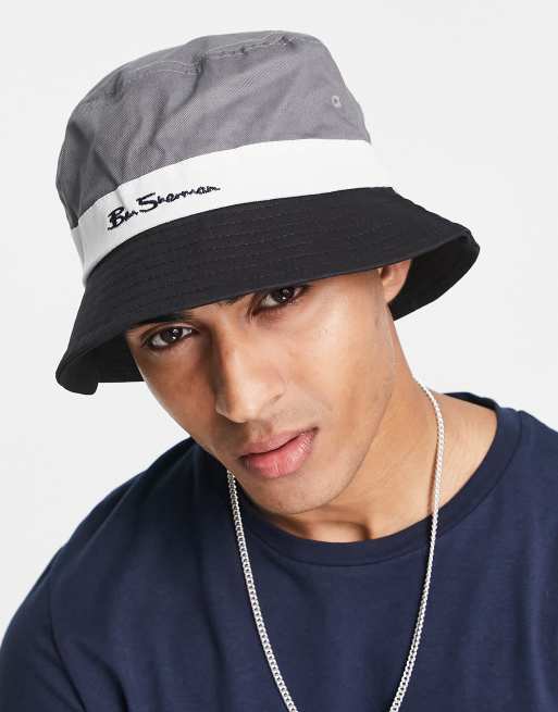 Sombrero de pescador negro con logo de texto de algodón de Ben Sherman