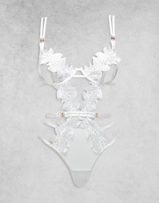 Body blanco con aros y diseño de hojas de croché Ophelia de Bluebella