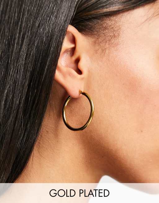 Pendientes de aro de 30 mm de acero inoxidable chapado en oro Exude de Bohomoon