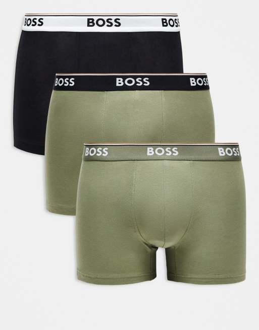 Pack de 3 calzoncillos bóxer de color verde y negro Power de Boss Bodywear