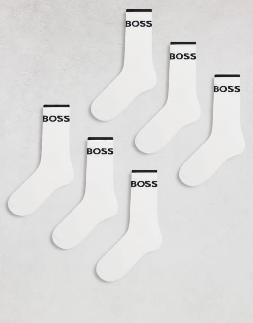 Pack de 6 pares de calcetines deportivos blancos con raya y logo de BOSS Bodywear
