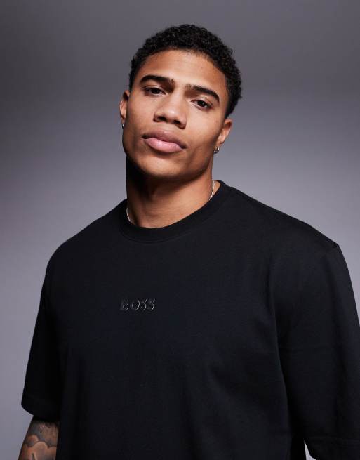 Camiseta negra extragrande con logo central 10 de BOSS Green