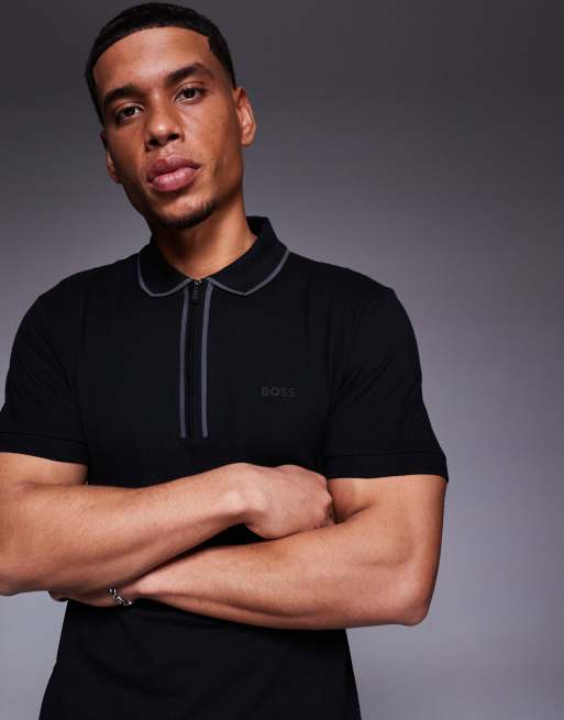 Polo negro de corte estándar con detalle de cinta y cremallera en el cuello de piqué Philix de BOSS Green
