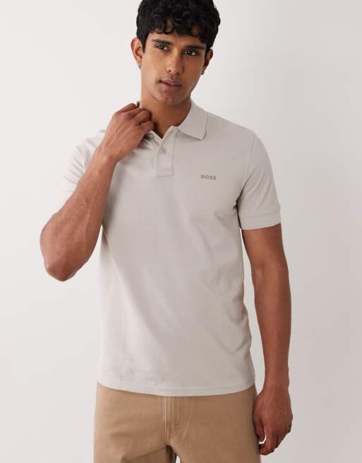 BOSS Orange - Prime - Polo gris con logo a tono de piqué de algodón