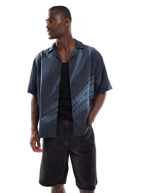 Camisa azul oscuro suelta de manga corta con cuello de solapas de Boss Orange