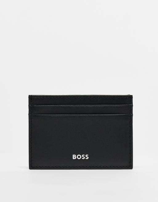 Tarjetero negro con logo de cuero Randy de BOSS