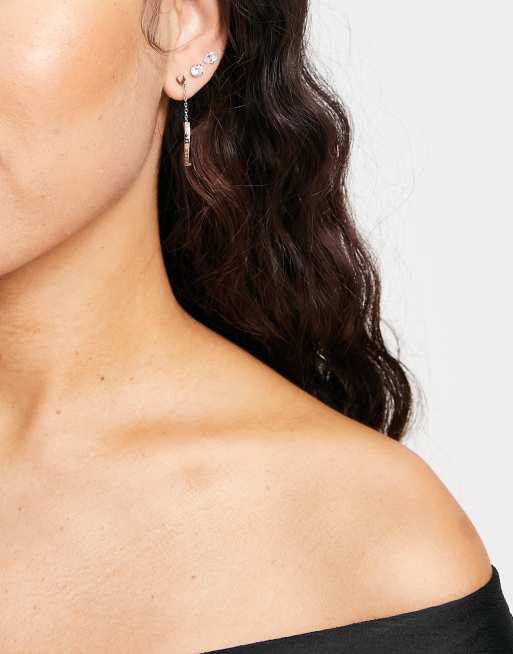 Pendientes largos plateados con detalle de la marca de Hugo Boss