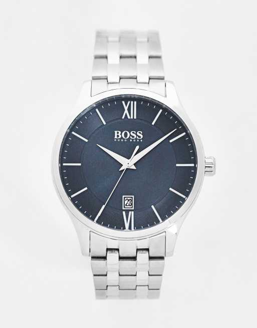 Reloj de pulsera plateado con esfera negra de hombre 1513896 de Boss