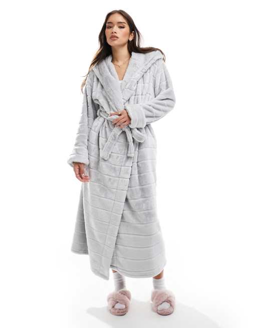 Albornoz largo gris afelpado con ribete de piel de Boux Avenue