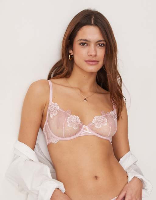 Sujetador balconette rosa con bordados de flores y lazos de Boux Avenue