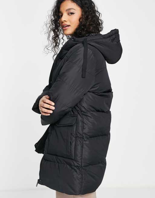 Abrigo acolchado largo negro con capucha Snowstar de Brave Soul